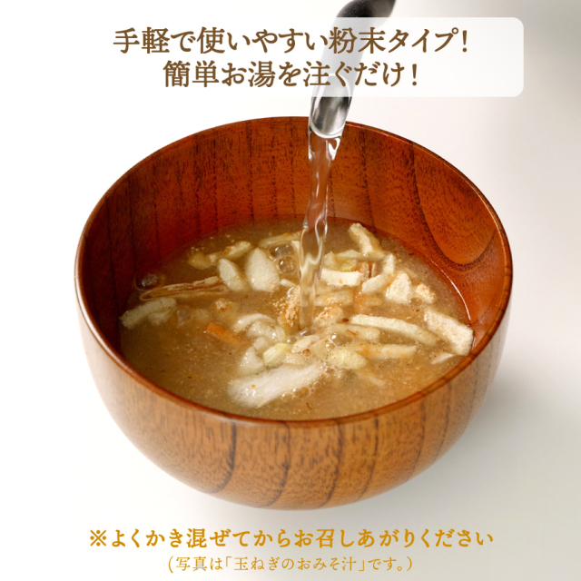 | 鰹節 / かつおぶし / かつお節 / かつお粉末 / かつお粉 / 鰹粉 / 鰹粉末 / ねぎ / ネギ / たまねぎ / 玉ねぎ / 玉葱 / わかめ / お麩 / おふ / フリーズドライ / 味噌 / みそ |