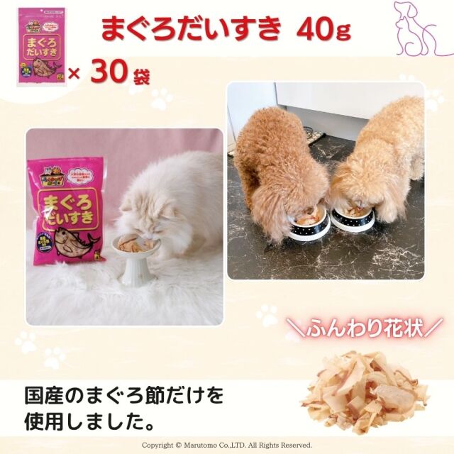 | 愛猫・愛犬用のまぐろ削り節です。 まぐろ節はかつお節に比べて上品な味が特徴です。 まぐろ節もかつお節と同様に高タンパク・低脂肪で栄養価に優れた食品です。 |